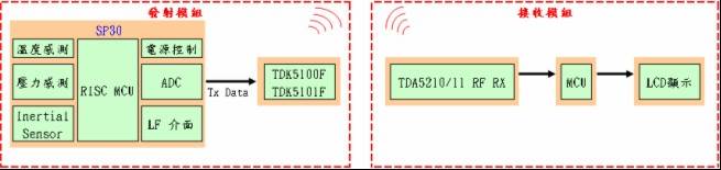 1.發(fā)射模塊:(1)感測單元(2)訊號處理(3)RF模塊