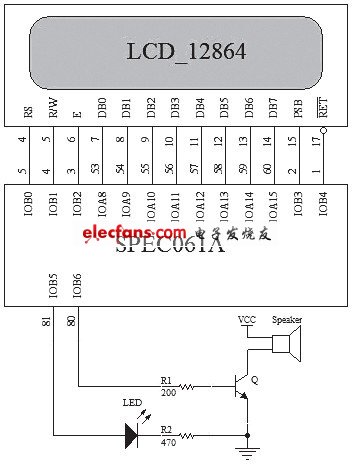 圖2 液晶顯示模塊和聲光報警電路原理圖