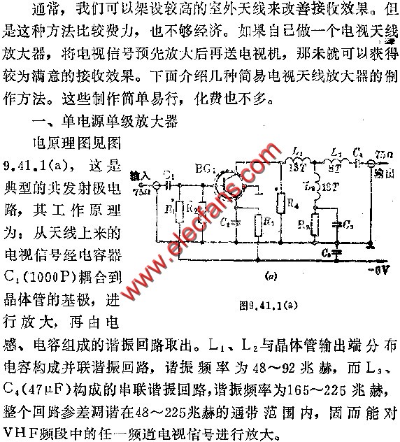 幾種簡(jiǎn)易電視天線放大器電路圖