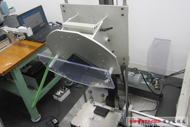 7、液晶屏彎曲試驗(yàn),通過(guò)金屬設(shè)備的壓力使液晶屏不在同一平面上,測(cè)試筆記本的柔韌度。