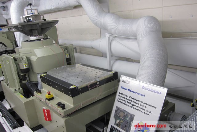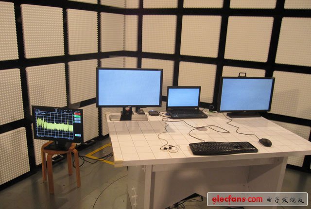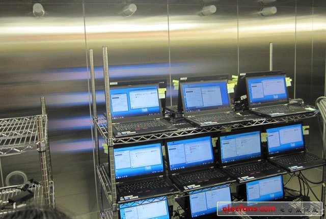 18、電波測(cè)試。圖為半無(wú)音電波暗室,測(cè)試該環(huán)境下,其他設(shè)備產(chǎn)生的電波對(duì)筆記本造成的影響。