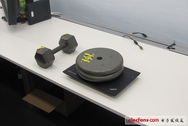 16、這兩個(gè)鐵質(zhì)的重物,一個(gè)普通的女生雙手抬起來(lái)會(huì)有些吃力,將它們壓到筆記本上,也是實(shí)驗(yàn)的內(nèi)容之一。