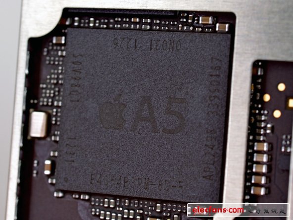 A5 芯片上顯示的 E4064P3PM-8D-5 說(shuō)明它使用 32nm 制造工藝,內(nèi)部是2 Gb LPDDR2 RAM。