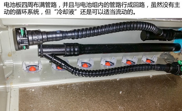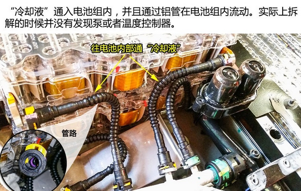 電池板內(nèi)除了電池組外,最多都是“冷卻液”管路。每組電池都需要通入一定量的“冷卻液”。雖然“冷卻液”并沒有泵驅(qū)動主動流動,但整個(gè)電池板所有管路都是相通的,“冷卻液”可熱脹冷縮進(jìn)行一定范圍流動。