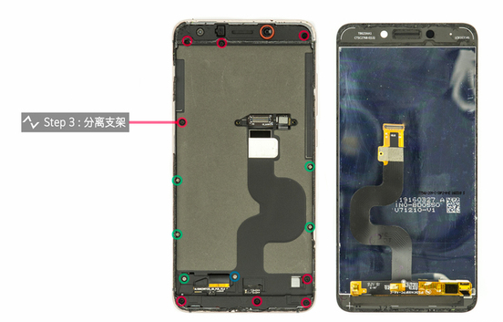 而 在機(jī)器的內(nèi)部,除了采用了聯(lián)發(fā)科的 Helio X20 處理器、eMMC 5.1 規(guī)格的閃存粒和把后置攝像頭放到了機(jī)身中部的指紋模塊上之外,整個的設(shè)計與樂1s 如出一轍。是的,在準(zhǔn)備拆開它的時候,好像就自帶 X 光,知道待會該往哪下手了。在加熱完屏幕四周后,打開屏幕比樂1s 更為容易,因為在上下兩側(cè)用的泡棉膠少了很多;拆下屏幕之后,可以看到整個屏幕的背光模組直接暴露在外,這樣的設(shè)計,相比起「支架 + 屏幕」組合起來的設(shè)計,使其售后維修更為復(fù)雜,也難怪現(xiàn)在廠家越來越多的推出了「以換代修」的增值服務(wù)吧。機(jī)身尺寸沒有改變的前提下,電池的容量沒有縮 水,只是樂2 這次將主 FPC 放在了電池下,因為主FPC與副板的一體設(shè)計,增加了裝配拆卸喇叭 BOX 的操作的復(fù)雜程度。在主板處的指紋模塊的設(shè)計,不同于之前樂1s 直接在固定在屏蔽罩上,這次是使用了塑膠支架將和泡棉膠將其固定到了主板 PCB 上。