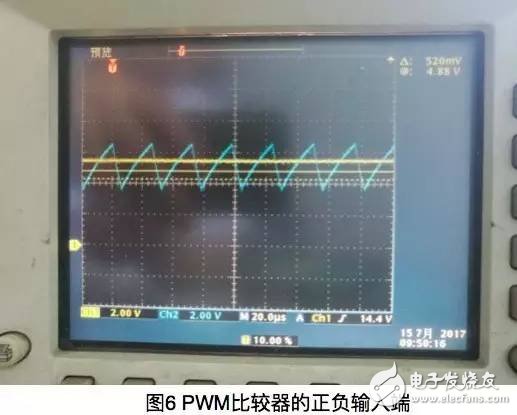 三角波電路和直流電平測試完成后,接下來就是兩路信號比較,輸出PWM波。比較器的兩路波形如圖6所示: