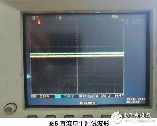 通過調整R15的電阻值,改變V3電壓值,從而改變直流電平值,由于這里用三極管的射極跟隨,所以直流電平比V3大0.7V左右。兩點的測試波形如圖5所示: