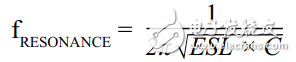 電容自諧振頻率就是電容電抗(1/ωC)等于ESL電抗(ωESL)時的頻率。對這一諧振頻率等式求解得到下式: