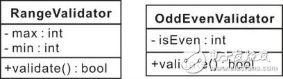 如圖 4.2所示RangeValidator類有min和max屬性,以及validate操作,min、max和validate都是RangeValidator的特征。特征是描述屬性或操作的類屬詞匯,類似地OddEvenValidator有isEven屬性和validate操作。