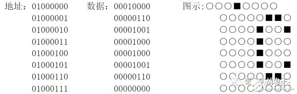 字符代碼0x00~0x0F 為用戶(hù)自定義的字符圖形RAM(對(duì)于5X8 點(diǎn)陣的字符,可以存放8 組,5X10 點(diǎn)陣的字符,存放4 組),就是CGRAM 了。后面我會(huì)詳細(xì)說(shuō)的。
