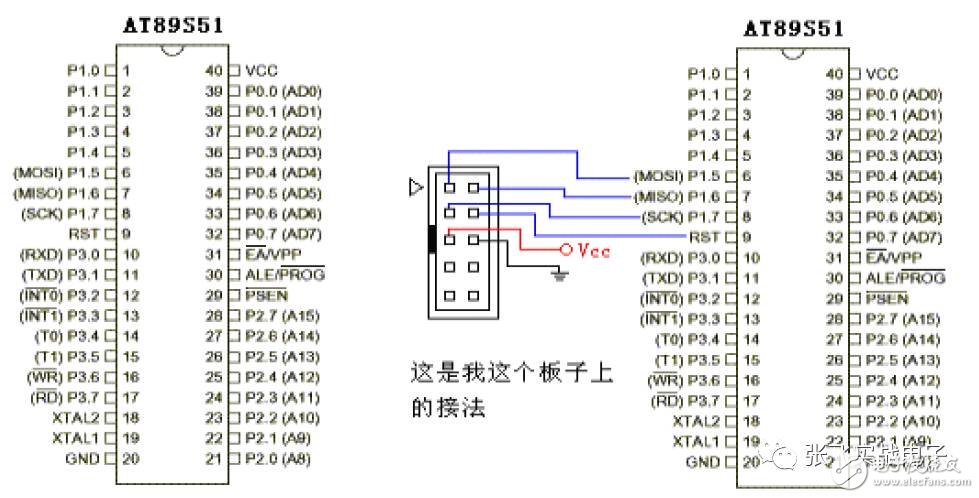 有網(wǎng)友問(wèn)我的板子上ISP 線是如何定義的,我上圖的右邊就是我這個(gè)板子上的接法。ISP 十針接口的定義如下圖