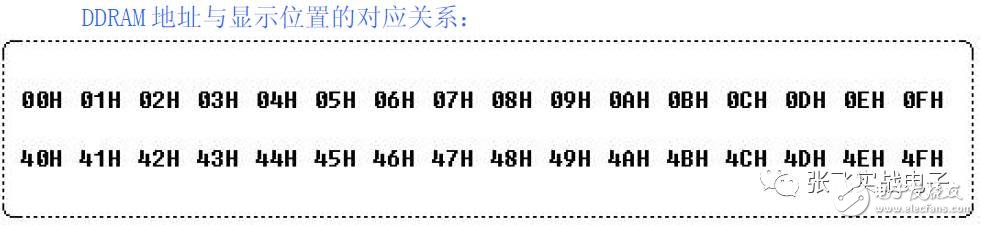 DDRAM 就是顯示數(shù)據(jù)RAM,用來(lái)寄存待顯示的字符代碼。共80 個(gè)字節(jié),其地址和屏幕的對(duì)應(yīng)關(guān)系如下表: