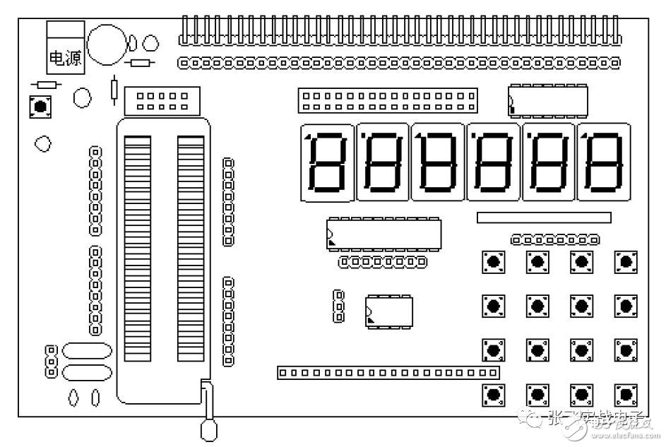 在板上除了最小系統(tǒng)外還有鍵盤(pán)輸入、數(shù)碼管、LCD、I2C 存儲(chǔ)器。它們的數(shù)據(jù)接口電源接口也是完全獨(dú)立的。其它的功能都準(zhǔn)備在以后通過(guò)上方的接口另外用板子擴(kuò)展。