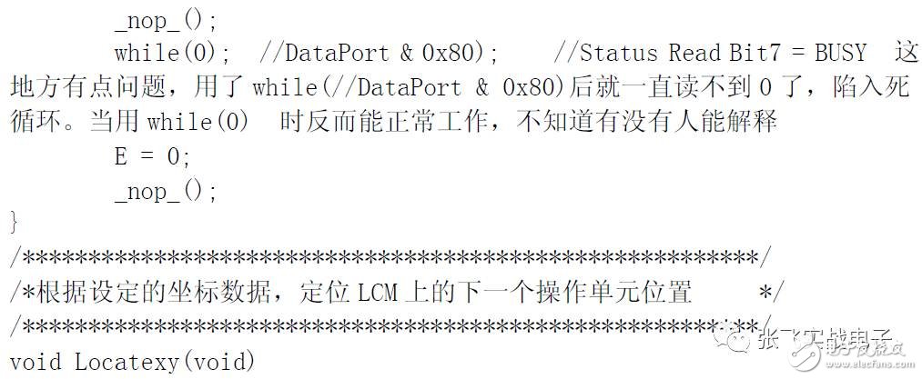 從上圖可以看出,“A”字的對(duì)應(yīng)上面高位代碼為0100,對(duì)應(yīng)左邊低位代碼為0001,合起來(lái)就是01000001,也就是41H??梢?jiàn)它的代碼與我們PC 中的字符代碼是基本一致的。因此我們?cè)谙駾DRAM 寫(xiě)C51 字符代碼程序時(shí)甚至可以直接用P1='A'這樣的方法。PC 在編譯時(shí)就把“A”先轉(zhuǎn)為41H 代碼了。
