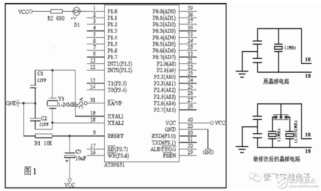 其實(shí)這個(gè)板子上的晶振電路是非常容易起振的。19 腳上的引線也沒(méi)那么敏感。但處理19 腳時(shí)可能的話還是要盡量短些的,畢竟它比18 腳要對(duì)外界干擾敏感的多。手摸上去就停振了。