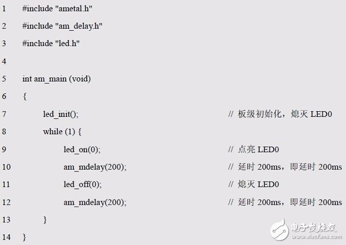 程序清單4.4 單個LED 閃爍范例程序(1)