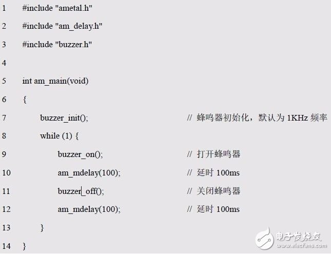 程序清單4.9 蜂鳴器發(fā)聲范例程序