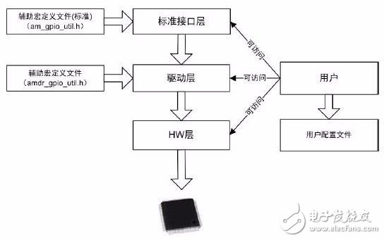 標(biāo)準(zhǔn)接口層對常見外設(shè)的操作進行了抽象,提出了一套標(biāo)準(zhǔn)API 接口,可以保證在不同的硬件上,標(biāo)準(zhǔn)API 的行為都是一樣的。用戶使用一個GPIO 的過程:先調(diào)用驅(qū)動初始化函數(shù),后續(xù)在編寫應(yīng)用程序時僅需直接調(diào)用標(biāo)準(zhǔn)接口函數(shù)即可。可見,應(yīng)用程序基于標(biāo)準(zhǔn)API 實現(xiàn)的,標(biāo)準(zhǔn)API 與硬件平臺無關(guān),使得應(yīng)用程序可以輕松的在不同的硬件平臺上運行。