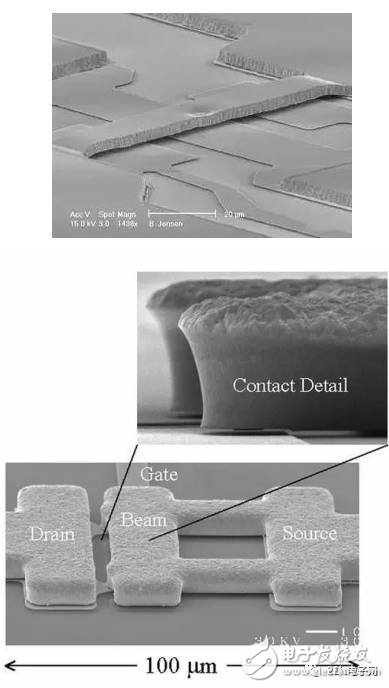 其尺寸微小,接近于固態(tài)開關(guān),而電路通斷采用與機(jī)械接觸(也有部分產(chǎn)品采用其他通斷方式),其優(yōu)勢劣勢基本上介于固態(tài)開關(guān)與傳統(tǒng)機(jī)械開關(guān)之間。MEMS繼電器與開關(guān)一般含有一個可移動懸臂梁,主要采用靜電致動原理,當(dāng)提高觸點(diǎn)兩端電壓時,吸引力增加,引起懸臂梁向另一個觸電移動,當(dāng)移動至總行程的1/3時,開關(guān)將自動吸合(稱之為pull in現(xiàn)象)。