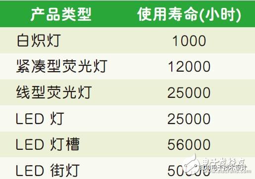 采用現(xiàn)有照明技術(shù)的白熾燈或熒光燈的性能通常用平均使用壽命來衡量,它是指連續(xù)工作的一批被測(cè)燈中一半發(fā)生故障(不再發(fā)光)所花的時(shí)間。白熾燈的平均使用壽命大約是1000小時(shí),緊湊型熒光燈的平均使用壽命約為1.2萬小時(shí),線型熒光燈的平均使用壽命約為2.5萬小時(shí)。相比之下,工作在合適環(huán)境條件下的LED的發(fā)光時(shí)間可達(dá)10萬小時(shí)甚至更長(zhǎng),因此無法測(cè)量它們的平均使用壽命。