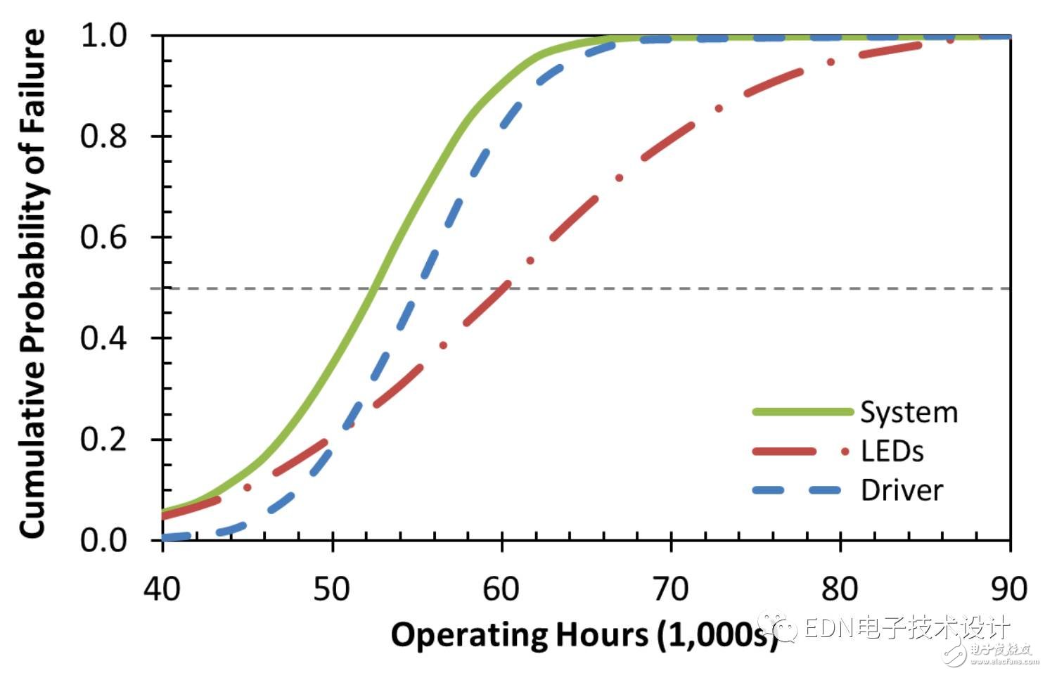 圖1:LED照明系統(tǒng)整體可靠性實(shí)例。(來源:美國(guó)能源部,建筑技術(shù)規(guī)劃固態(tài)照明技術(shù)情況說明書)
