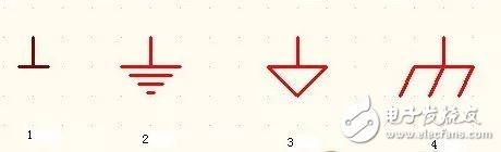 如圖1分別是電源地、信號地、屏蔽地以及大地四種不同地的常見符號。
