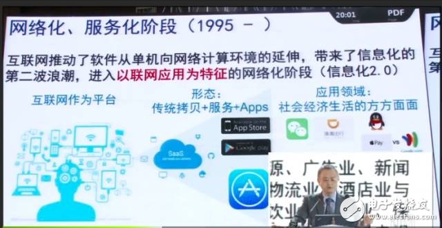 回顧過去計(jì)算機(jī)軟件發(fā)展,我認(rèn)為大概可以分為三個階段。第一個是1946到1975中期,是軟硬一體化階段。第二個是1975年以后,軟件產(chǎn)品化、產(chǎn)業(yè)化階段;第三個是1995年以后,軟件的網(wǎng)絡(luò)化、服務(wù)化階段。