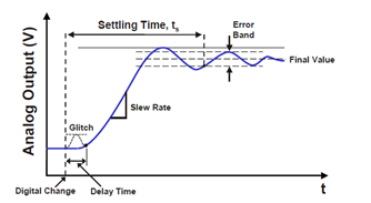 而運放從信號輸入到輸出,并不是一個無延時的過程,而是一個有延時還帶震蕩的過程,同時,這個過程的時間還會因為后級線路的PCB設計而增大。如下圖: