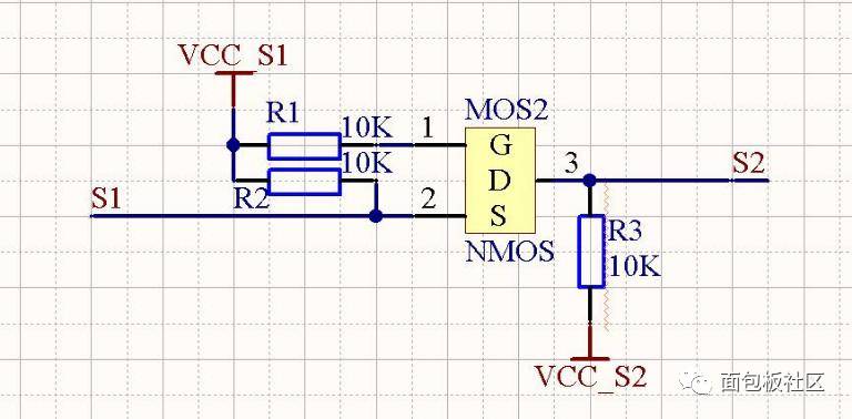 1.VCC_S1<=VCC_S22.S1的低電平門限大于0.7V左右(視NMOS內(nèi)的二極管壓降而定)3.Vgs<=VCC_S14.Vds<=VCC_S2