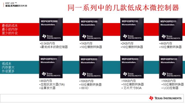 過(guò)去,TI以超低功耗的MSP430微控制器系列產(chǎn)品而著稱(chēng)。始終專(zhuān)注于低功耗領(lǐng)域,并將繼續(xù)保持在此領(lǐng)域的領(lǐng)導(dǎo)地位。與此同時(shí),TI也將會(huì)加大力度,開(kāi)發(fā)可以幫助我們成為感測(cè)應(yīng)用領(lǐng)域領(lǐng)導(dǎo)者的產(chǎn)品,如擴(kuò)大溫度范圍、增強(qiáng)安全性、提供更多的連接選項(xiàng)和先進(jìn)的模擬前端等。