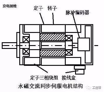 伺服電機(jī)內(nèi)部的轉(zhuǎn)子是永磁鐵,驅(qū)動(dòng)器控制的U/V/W 三相電形成電磁場(chǎng),轉(zhuǎn)子在此磁場(chǎng)的作用下轉(zhuǎn)動(dòng),同時(shí)電機(jī)自帶的編碼器反饋信號(hào)給驅(qū)動(dòng)器,驅(qū)動(dòng)器根據(jù)反饋值與目標(biāo)值進(jìn)行比較,調(diào)整轉(zhuǎn)子轉(zhuǎn)動(dòng)的角度。伺服電機(jī)的精度決定于編碼器的精度(線數(shù))。