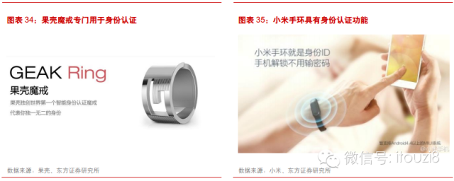 我 們認(rèn)為,安全認(rèn)證(包括支付)和控制有望成為一般消費(fèi)類可穿戴產(chǎn)品的殺手級應(yīng)用??纱┐髟O(shè)備佩戴在人體,不容易遺失,大多數(shù)時(shí)候可以與用戶的一一對應(yīng),因 而有望成為用戶的身份證明。該用途已在果殼魔戒、小米手環(huán)等產(chǎn)品上有所應(yīng)用,當(dāng)佩戴魔戒或手環(huán)的用戶靠近手機(jī),射頻信號通過線圈進(jìn)行感應(yīng),自動啟動安全認(rèn) 證流程,完成類似于門禁卡的功能。蘋果Apple Watch進(jìn)一步提升安全認(rèn)證的級別,以滿足更高要求的認(rèn)證,例如:支付等功能。