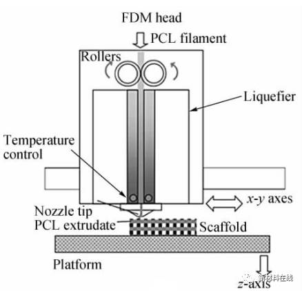 近年來(lái),利用FDM技術(shù)制備生物醫(yī)用高分子材料也受到越來(lái)越多的重視,尤其是以脂肪族聚酯為原料制備生物可降解支架材料,取得了相當(dāng)多的進(jìn)展。材料的性質(zhì)受到壓力梯度熔體流速溫度梯度等影響,聚酯與無(wú)機(jī)粒子的復(fù)合物也能用于熔融沉積成型制備3D支架材料。