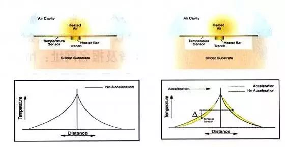 熱對流加速度的原理與其他加速度計(jì)有根本上的區(qū)別,其他加速度計(jì)的原理都是建立在一個(gè)二階系統(tǒng)的基礎(chǔ)之上,而熱對流加速度計(jì)采用的是完全不同的原理。