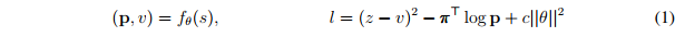其中,c是控制L2權(quán)重正則化水平的參數(shù)。更新的參數(shù)將被用于之后的自我對(duì)弈當(dāng)中。