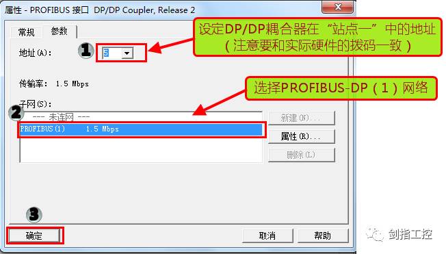 注意:因為PROFIBUS-DP(1)和PROFIBUS-DP(2)是兩個完全不同的網(wǎng)絡(luò),所以它們之間的通訊速率可以不同,都可以有自己的DP從站,站點地址可以重復(fù)