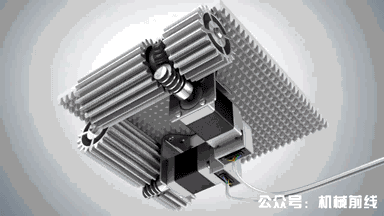 當(dāng)我需要水平移動(dòng)時(shí),只需要開(kāi)啟水平蝸桿電機(jī),驅(qū)動(dòng)水平側(cè)的直齒輪!