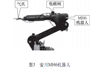 選擇工業(yè)機器人末端執(zhí)行器應考慮夾取對象的形狀與質(zhì)量,本實例選擇氣動手爪,如圖4所示,型號為HDS-20Y,控制手爪動作的電磁閥安裝在MH6機器人本體上。若工件質(zhì)量大,可選用液壓手爪。