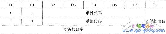 識(shí)別確認(rèn)后的硬幣,其幣種與幣值代碼經(jīng)奇偶處理后,由RB1引腳以串行方式傳到費(fèi)率管理上位機(jī)(例如80C31等)中,通信約定取異步方式,其數(shù)據(jù)結(jié)構(gòu)如下圖所示。對(duì)應(yīng)每個(gè)硬幣發(fā)一組數(shù)據(jù),每組由3個(gè)數(shù)據(jù)字組成,其格式見(jiàn)下表。