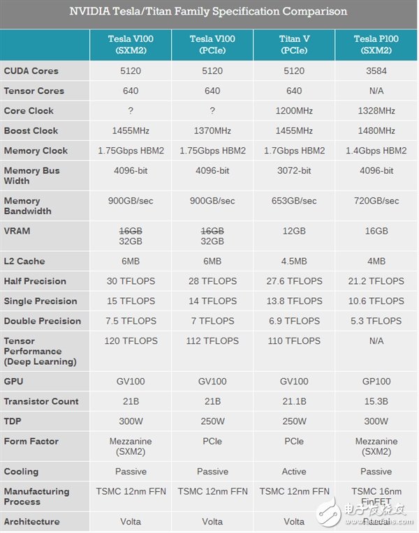 Tesla V100其實發(fā)布于2017年度的GTC大會,不過這一次,升級到了32GB HBM2顯存。