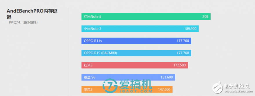 相比于處理器性能的表現(xiàn),內(nèi)部性能部分的表現(xiàn)就沒那么理想了,單核部分被驍龍660拋離較大,甚至要弱于采用驍龍636的紅米Note5。多核部分則表現(xiàn)比較強勢,領(lǐng)先于所有采用驍龍660的對比機型。內(nèi)存延遲則表現(xiàn)正常,跟其他兩臺采用驍龍660的機型在同一水準。