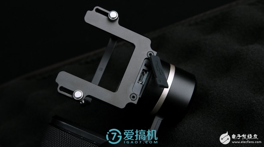 手柄左側(cè)的1/4英寸接口和定位銷(xiāo),可以自行添加手機(jī)支架用于實(shí)時(shí)取景,但實(shí)際用到的機(jī)會(huì)不多,更多是用來(lái)把穩(wěn)定器橫向固定在腳架上。