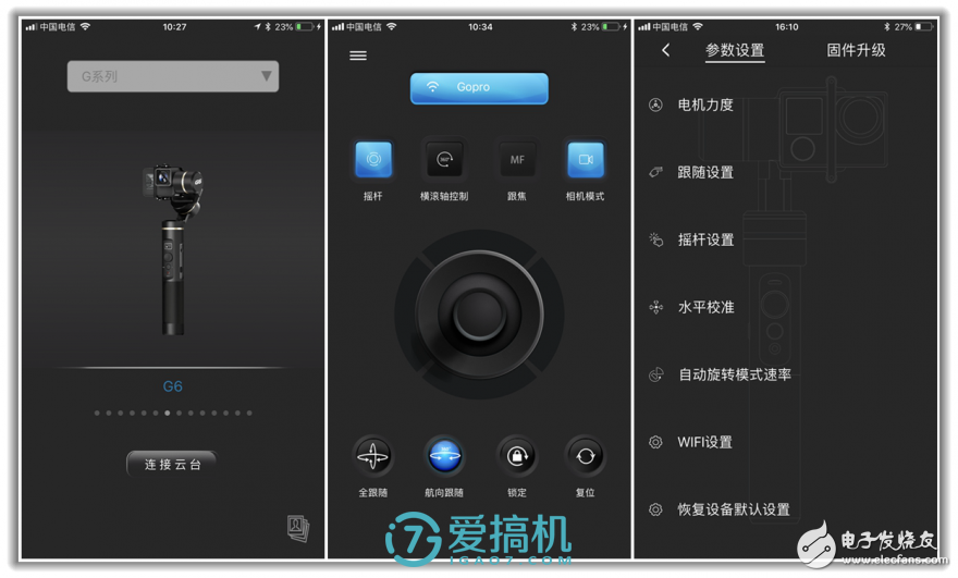 飛宇G6通過(guò)藍(lán)牙連接和控制,除了和實(shí)體按鍵一致的功能按鈕外,主要是對(duì)“電機(jī)力度、跟隨限位、搖桿、自動(dòng)旋轉(zhuǎn)和水平校準(zhǔn)”5個(gè)進(jìn)行微調(diào)和控制,設(shè)定簡(jiǎn)單、直觀,連接穩(wěn)定性也OK。主要問(wèn)題是藍(lán)牙連接導(dǎo)致設(shè)置載入速度偏慢,所幸調(diào)整機(jī)器是低頻操作,實(shí)質(zhì)影響不大。