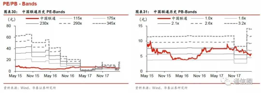 從股息率來看,公司以往股息率是移動(dòng)和電信股息率均值的20%~36%,這也是估值偏低的原因之一。2016年公司業(yè)績大幅下滑,沒有分紅。2017年公司分紅預(yù)案中擬每10股派息0.204元(含稅),雖然股息率仍然偏低(中國移動(dòng)2017年派發(fā)上市二十周年紀(jì)念特別股息每股3.20港元,拉高了行業(yè)平均水平,剔除特別股息后股息率為4.36%),但值得注意的是,2017年中國聯(lián)通擬分紅金額占合并報(bào)表中歸屬于上市公司普通股股東的凈利潤的比率高達(dá)144.84%,顯示了公司回饋股東的決心和對公司未來發(fā)展的信心。我們認(rèn)為,隨著公司盈利狀況進(jìn)一步改善,公司業(yè)績進(jìn)一步提高,公司股息率有望繼續(xù)上升,公司估值也應(yīng)有所提升。