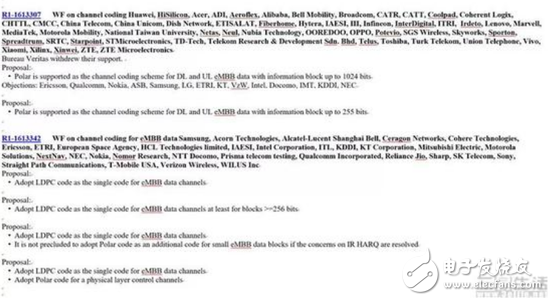 我們來看下面英文核心意思是:提案認(rèn)為,對于eMBB的上下行數(shù)據(jù)信道,碼塊大于1024比特時,支持Polar碼作為編碼方式。支持者包括華為、華為海思、宏碁、ADI、貝爾移動、博通、中國移動、中國電信、中國聯(lián)通(5.680, -0.13, -2.24%)、聯(lián)想、Marvell、聯(lián)發(fā)科、摩托羅拉移動、努比亞、OPPO、東芝、vivo、小米、中興……總共59家。反對著則為三星英特爾、諾基亞等廠家。也就是說聯(lián)想在事關(guān)核心重要的數(shù)據(jù)通道短碼中是支持華為的Polar的。