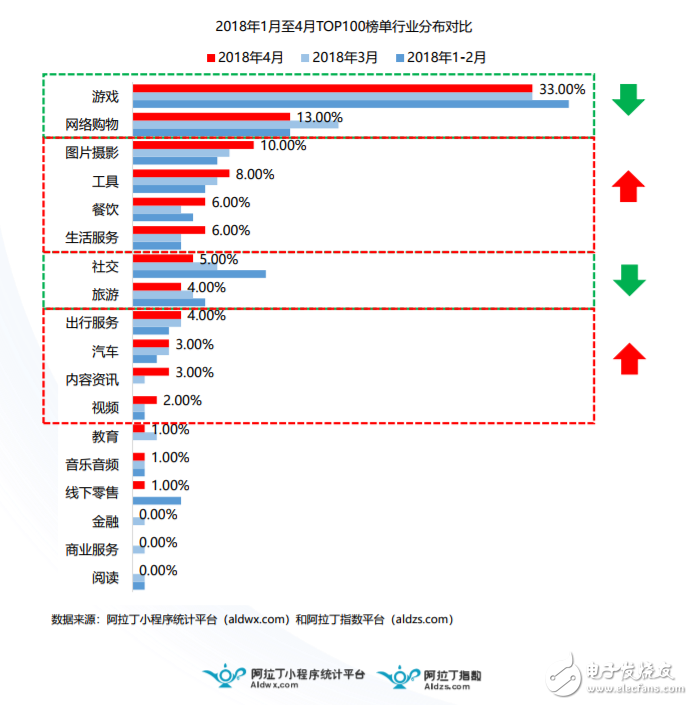 如果把現(xiàn)在的小程序比作一臺(tái)車,游戲和電商就是兩個(gè)最核心的推進(jìn)器。眼下的小程序生態(tài)也從側(cè)面證明了這一點(diǎn),在阿拉丁的小程序榜單中游戲份額 33%,電商份額 13%,分別占據(jù)了前兩位。