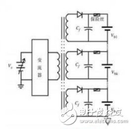 如果你想利用下面的電路示意圖,做一個多路輸出的反激電源,利用各個模塊的輸出電壓來對電池實現均衡,我估計你需要很深的功力才可以,因為單單交叉調整率這一項就很難。但是,利用這個電路,我們可以換一下思路,各路輸出不需要穩(wěn)壓,當然為了防止開路損壞輸出電容,我們可以做一個簡單的原邊反饋。然后在每路輸出到電池之間串聯(lián)一個電子開關,由于這種均衡是配合電池管理系統(tǒng)一起工作的,因此每路輸出只要串聯(lián)一個電子開關,由管理單元控制即可,哪路電壓地我們就可以打開這個電子開關,有電源輸出給該節(jié)電池充電,直到所有單體電池電壓達到我們的期望值。