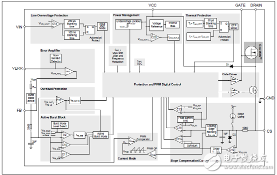 ? Comprehensive protection with input line over voltage protection, VCC over voltage,VCC under voltage, overload/open loop, over temperature and Current Sense (CS) short to GND