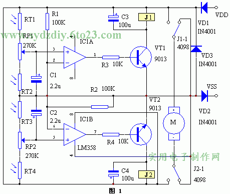 太陽(yáng)能熱水器自動(dòng)跟蹤陽(yáng)光電路圖