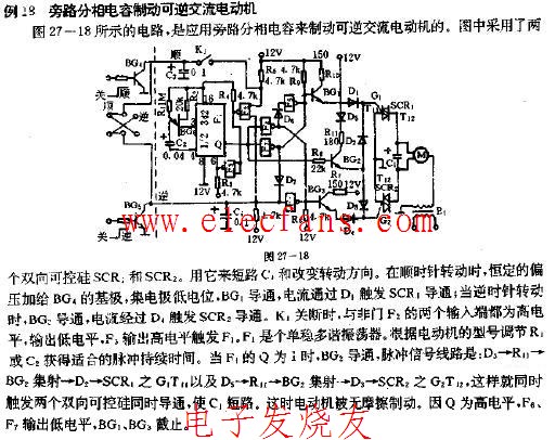 旁路分相電容制動可逆交流電動機(jī)電路圖